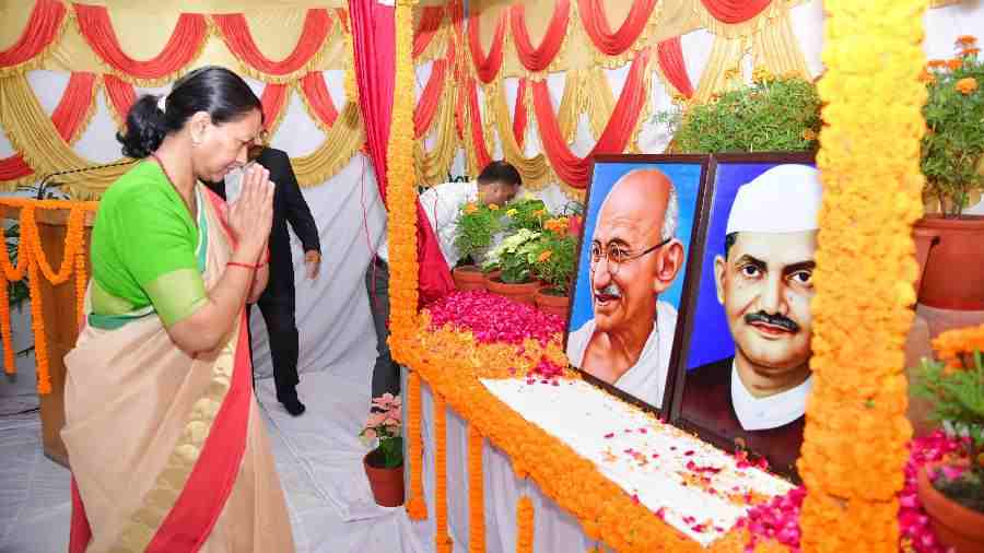 देहरादून : मुख्य सचिव श्रीमती राधा रतूड़ी ने गांधी जयंती और शास्त्री जयंती के अवसर पर सचिवालय में राष्ट्रपिता महात्मा गांधी तथा पूर्व प्रधानमंत्री श्री लाल बहादुर शास्त्री के चित्र पर माल्यार्पण कर उनका भावपूर्ण स्मरण किया।