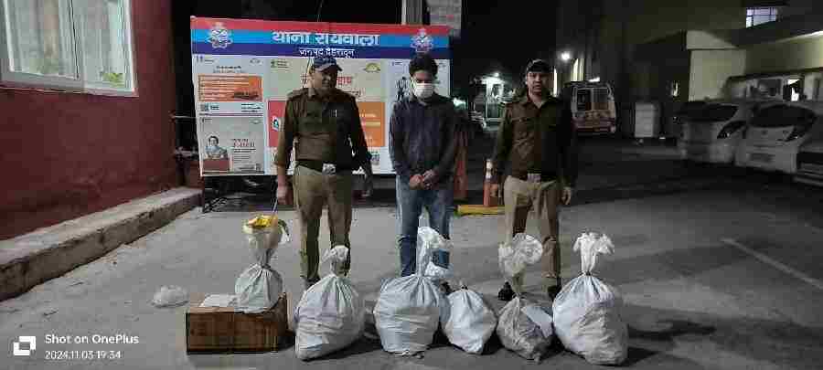इसी क्रम में आज दिनांक 03-11-2024 को थाना रायवाला पर गोपनीय रूप से सूचना प्राप्त हुई थाना रायवाला क्षेत्र में खैरीखुर्द फूड प्लाजा रेस्टोरेन्ट के संचालक आयुष रावत पुत्र भूपेन्द्र सिंह एच0पी0 पेट्रोल पम्प वाली गली खैरीखुर्द द्वारा अपने रेस्टोरेन्ट फूड प्लाजा में अवैध शराब की बिक्री की जा रही है। पुलिस टीम द्वारा सुरागरसी पतारसी करते हुए उक्त रेस्टोरेंट के बाहर जाकर देखा तो वंहा भीड लगी हुई थी, आस-पास के लोगों से पता करने पर ज्ञात हुआ कि उक्त फूड प्लाजा का संचालक अपने रेस्टोरेंट में अवैध रूप से शराब की बिक्री करता है। पुलिस टीम द्वारा उक्त रेस्टोरेंट पर छापा मारा गया तो रेस्टोरेन्ट खुला था तथा रेस्टोरेन्ट के बाहर व अन्दर शराब बिखरी हुई थी। रेस्टोरेन्ट का संचालक आयुष रावत मौके से फरार था। आस-पास तलाश करने पर रेस्टोरेन्ट संचालक नहीं मिला रेस्टोरेन्ट में रखी व बाहर बिखरी हुई 4 पेटी अवैध देशी शराब (माल्टा), 09 पेटी अवैध अंग्रेजी शराब व 14 केन अवैध बीयर को कब्जे में लिया गया, अभियुक्त के विरूद्ध थाना रायवाला पर *मु0अ0सं0 208/24 धारा 60 आबकारी अधिनियम* पंजीकृत किया गया। अभियुक्त की गिरफ्तारी हेतु पुलिस टीम द्वारा स्थानीय मुखबिर तंत्र को सक्रिय किया गया। जिसके परिणाम स्वरूप अभियुक्त उक्त वांछित अभियुक्त आयुष रावत को मुखबिर की सूचना पर नेपाली तिराहा तीन पानी पुलिया के पास से गिरफ्तार किया गया।