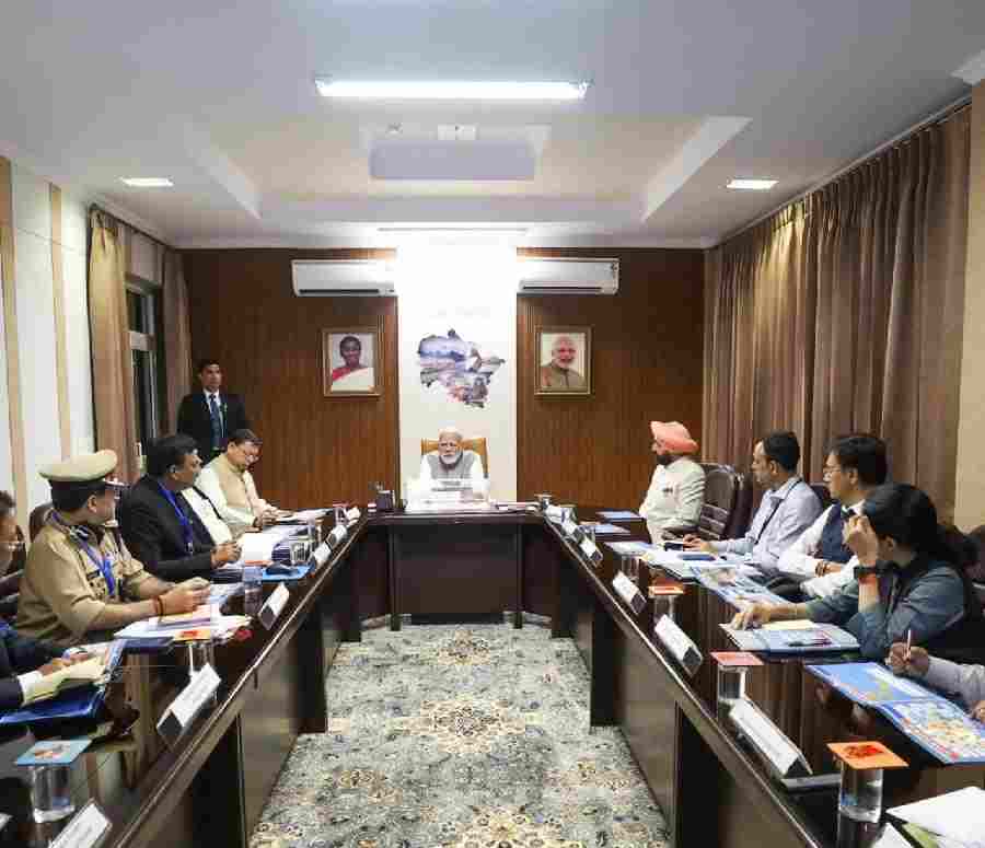 प्रधानमंत्री ने देहरादून का दौरा किया और उत्तराखंड में बाढ़ से हुए नुकसान का आकलन करने के लिए समीक्षा बैठक की