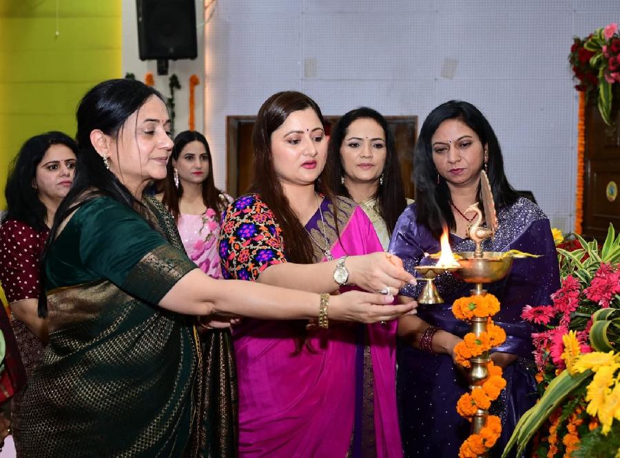 मुख्य अतिथि श्रीमती गीता धामी द्वारा दीप प्रज्वलित कर दीपावली एवं करवाचौथ कार्यक्रम का शुभारंभ