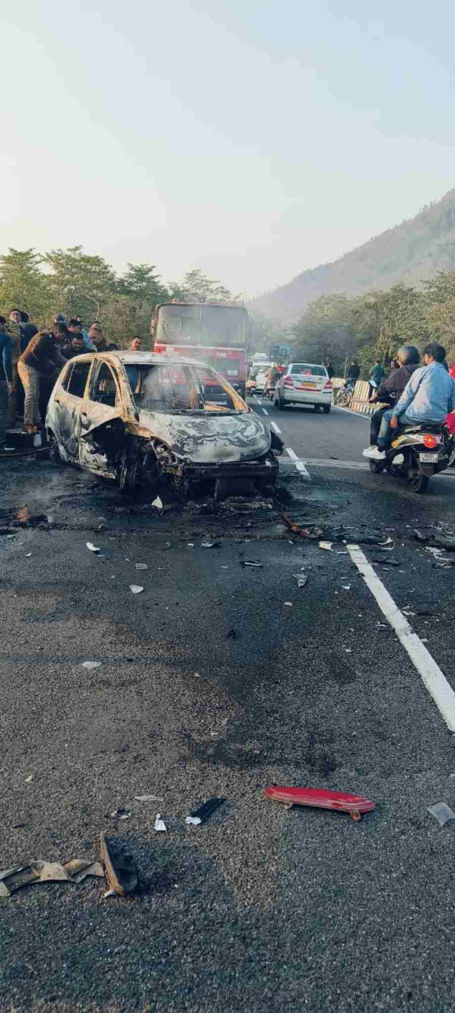 आज दिनांक 2/02/2025 को 112 पुलिस कंट्रोल रूम से सूचना प्राप्त हुई कि सोडा सरोली पुल पर दो गाड़ियों के बीच आमने-सामने की टक्कर हुई है, जिसमें एक गाड़ी में आग लग गई। सूचना प्राप्त होते ही पुलिस बल तथा फायर सर्विस की टीम तत्काल मौके पर पहुंचे ।